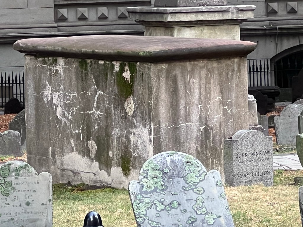 On September 19, 1671, it is recorded that John bought for the sum of £500 in New England silver money “the Mansion or dwelling-house of the Late Antipas Voice with the gardens wood-yard and Backside as it is scituate lying and being in Boston aforesaid as it is nowe fenced in And is fronting & Facing to the Lane going to mr John Jolliffes.” The Winslows lived in this house until his death in 1674 and that of Mary Chilton in 1679. The house (which would have been on Spring Lane) no longer exists.[21]